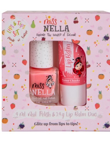 Pako argëtuese Miss Nella me 1 llak për thonj për fëmijë që hiqet me lehtësi dhe 1 Balsam Buzësh XL për buzë të buta – për kujdes të plotë!