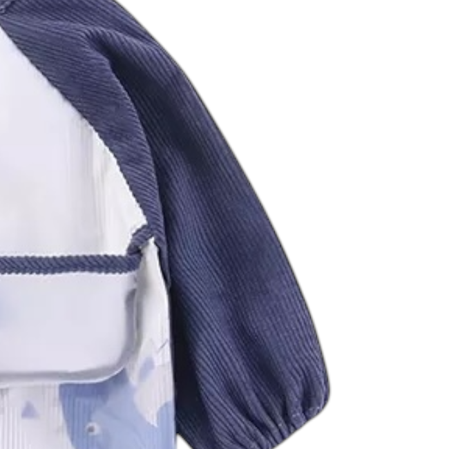 • Ky bib me mëngë të gjata do t'ju shpëtojë nga shumë njolla në rrobat e foshnjës tuaj gjatë ushqyerjes. Është plotësisht i papërshkueshëm nga uji. Mëngët ofrojnë mbulim shtesë dhe xhepi në pjesën e përparme mbledh copat e ushqimit dhe thërrmijat.