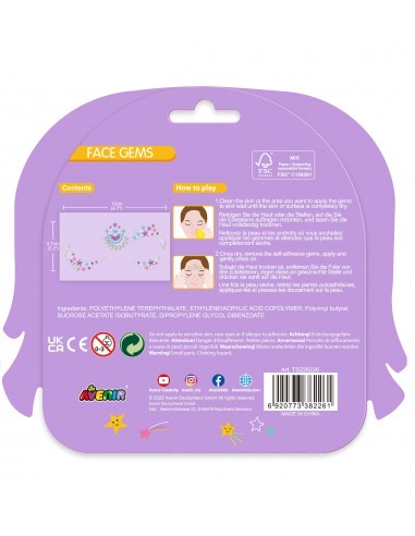 Kush mund t'i rezistojë perllave shkëlqyese! Face Gems për fytyrën nga Avenir janë krijuar për të ndezur imagjinatën dhe për të stimuluar kreativitetin te fëmijët! Përkryer për raste speciale si ditëlindje, Krishtlindje, Halloween, natë lojërash dhe më shumë. Ato janë testuar dhe janë bërë nga materiale të sigurta dhe jo toksike, të përshtatshme për fytyrën, trupin, thonjtë dhe flokët. Janë gjithashtu të shkëlqyera për veshje, pasqyra, kupa, telefona ose për të krijuar kartolinën tuaj të urimit. Materiali është hipalergjik dhe nuk kërkon ngjitës. Aplikimi dhe heqja janë të lehta, të sigurta, argëtuese dhe të pastra.