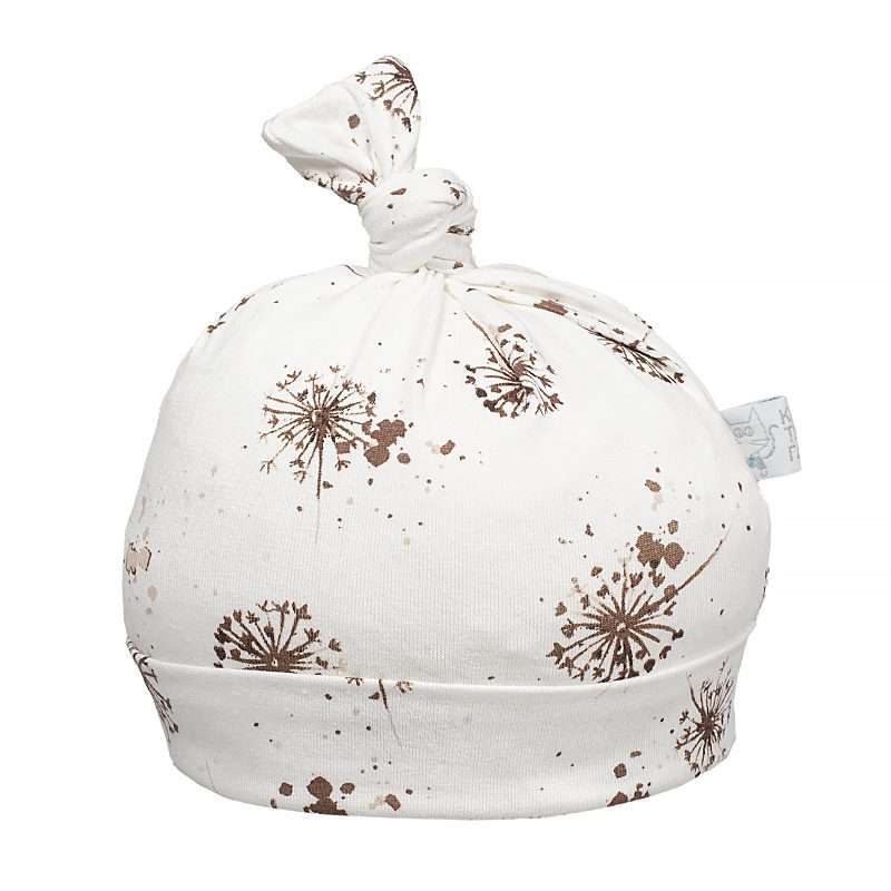 Kapelë për bebe nga pambuku me një nyjë dekorative në majë.