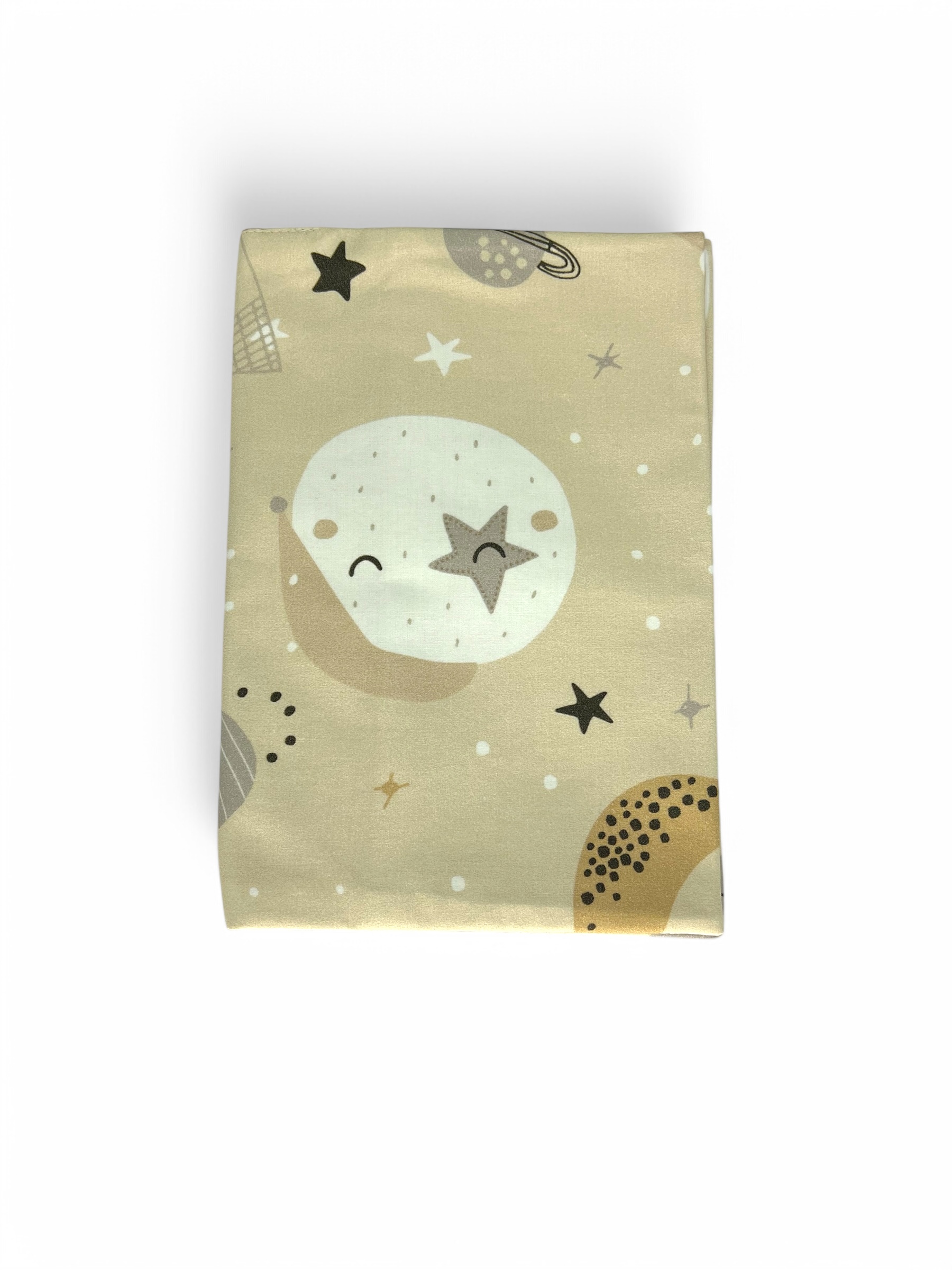 Është e bërë me duar dhe e qepur me pambuk, tela hipoalergjikë me certifikatë Oeko-Tex 100. Nga jashtë, pambuku me shtypjen e Planeteve që flenë dhe yjet, ndërsa brenda, pambuku sipas zgjedhjes suaj.
