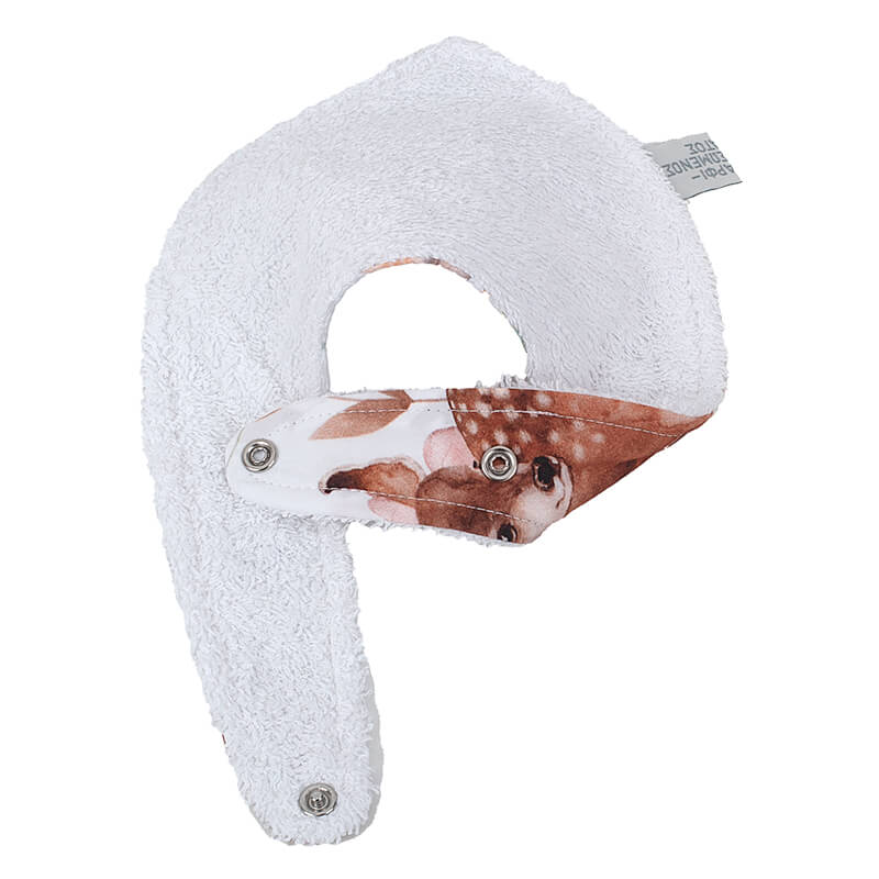 Falë ndërtimit të saj të veçantë, fiksohet lehtësisht në qafën e foshnjës, ndërsa kapëset në pjesën e pasme ju lejojnë të zgjidhni pozicionin e duhur, në varësi të zhvillimit të foshnjës tuaj.