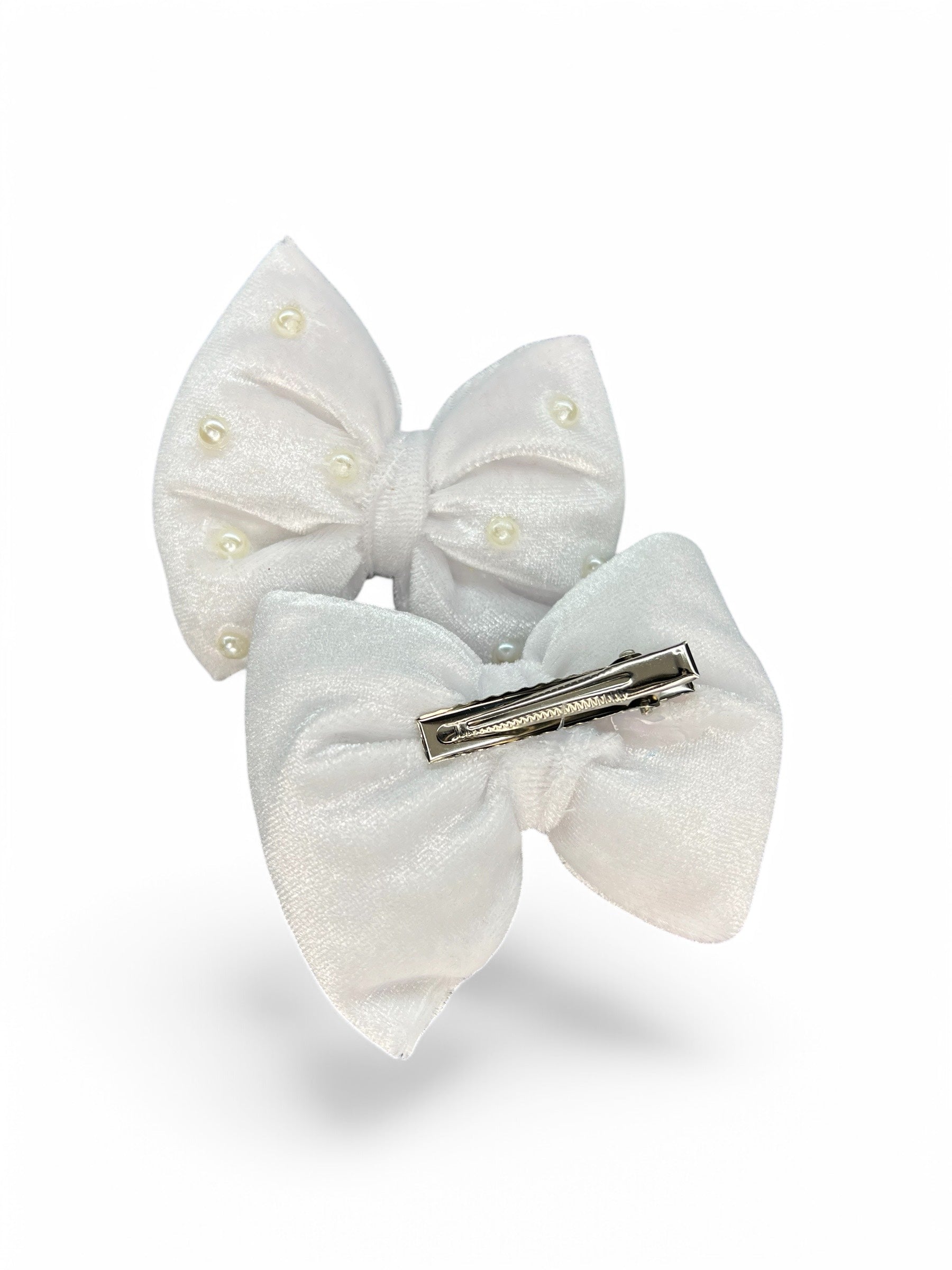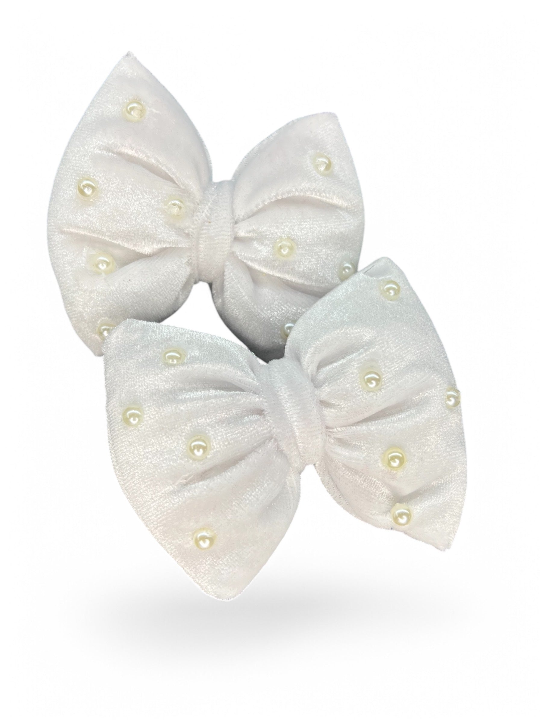 Shiritat e bardhë velvet të punuar me dorë me perla të qepura. Shumë mbresëlënëse dhe ideale për paraqitje formale.