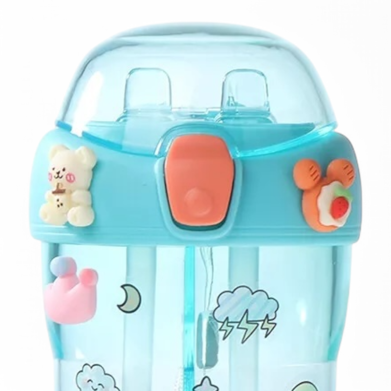 Shishe plastike për fëmijë me dy pipeta, 430ml, blue